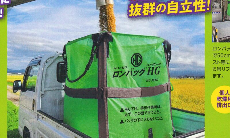 「ロンバッグHG」リニューアルのお知らせ 2026.2.25 このたび、収穫用フレコンバッグ「ロンバッグHG」が新しくなりました。 米穀はもちろん、麦・大豆・とうもろこし・そばなど、さまざまな作物の収穫に対応。 容量は1300L~2200Lまでラインアップし、用途に応じてお選びいただけます。 バックル式排出口の採用や、立ったまま折りたためる設計により、作業性もさらに向上しました。 メッシュ生地・PP生地タイプもご用意しております。 製品の特長や仕様の詳細は、下記おすすめページよりご覧ください。 新型ロンバッグHGの詳細はこちらから 「やまがた教育パートナーズ」に認定されました 前の記事